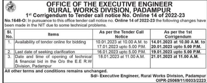 In pursuance to this office tender call notice no. Online 14 of 2022-23 the following changes have