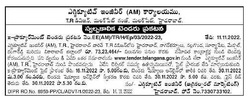 information regarding cost of work Sri Ede from www.tender.telangana.gov.in or Executive Engineer (AM). Can be obtained from T.R..Hyderabad