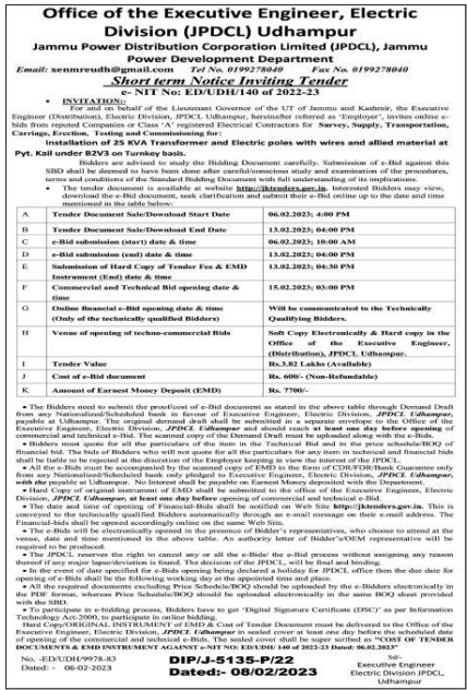 Installation of 25 KVA Transformer and Electric poles with wires and allied material at
