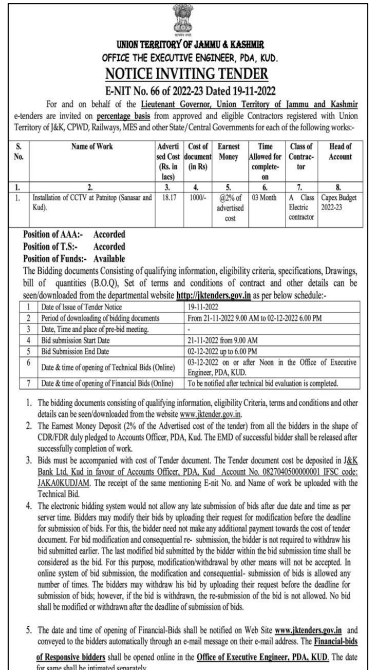 Tender for Installation of CCTV at Patnitop