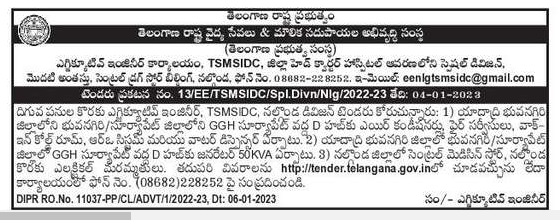 in Bhuvanagiri / Suryapet District in Yadadri Bhuvanagiri District. 3) Electrical repairs for Central Medicine Store, Nalgonda, in Nalgonda District.