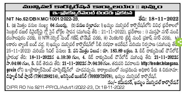 Installation of Glow Sign Board on Central Double Dividers at various locations in Khammam Municipal Corporation