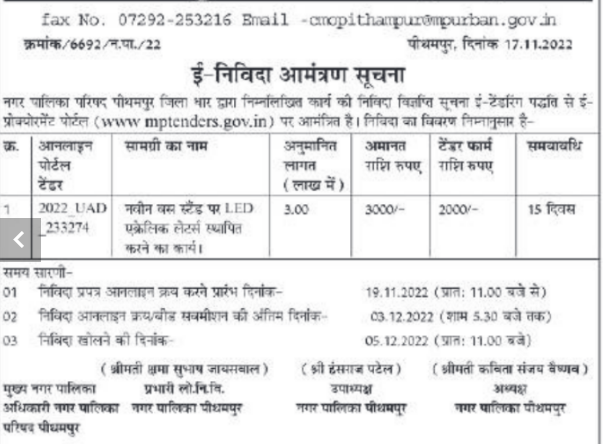 Tender for Installation of LED acrylic letters at new bus stand