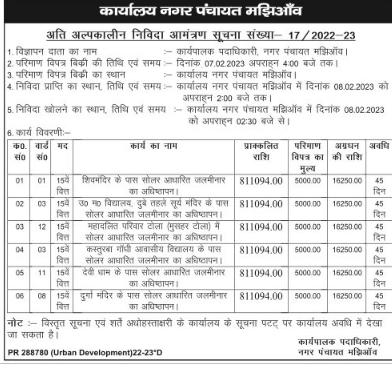 Tender for Installation of solar based water tower near Devi Dham