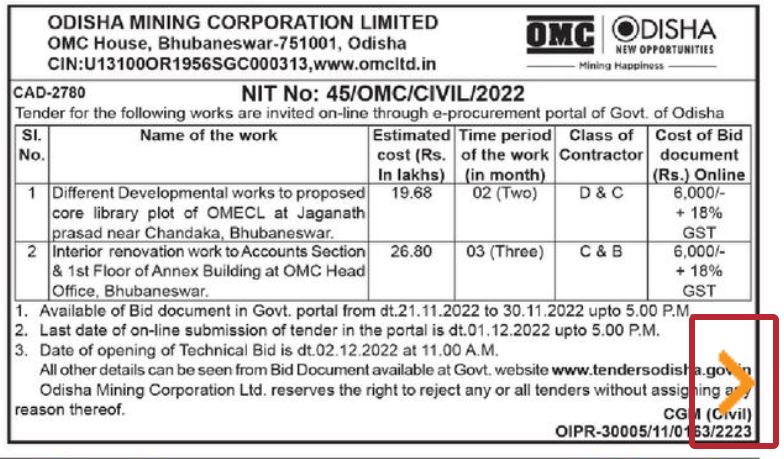 All other details can be seen from Bid Document available at Govt. website www.tendersodisha.govin
