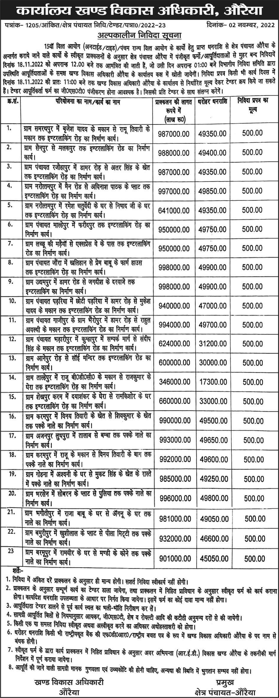 Tender for Interlocking from village Lachhu ki Madaiyan to near expressway , Road construction work.
