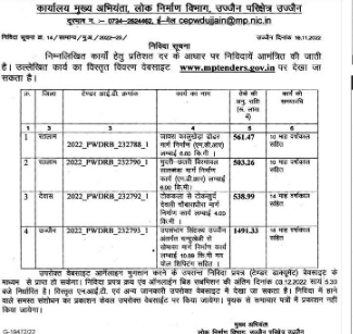 Detailed description of the mentioned work can be seen on the website www.mptenders.gov.in.