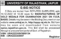 Tender for invited from REPUTED SUPPLIERS upto 14.12.2022 12.00 noon for MANUFACTURING OF GOLD MEDALS FOR EXAMINATION 2021 ON F.O.R. BASIS.