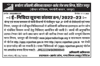 Jaipur for development works related to Executive Engineer Hawamahal- Amer Zone. Estimated