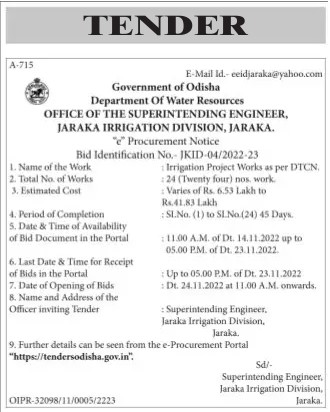 Tender for Irrigation Project Works as per DTCN