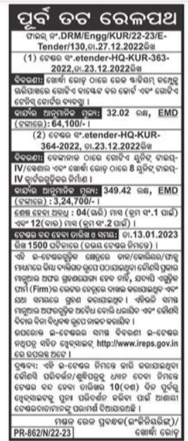 Tender for IV/Beshal and Khurda Road and unit type IV Construction of Charters.
