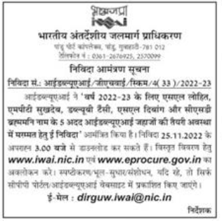 Tender From Tender. IWAIGHY/Scheme/4 ( 33 ) / 2022-23