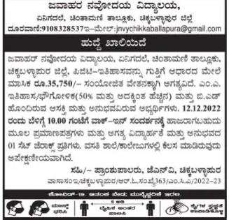 Tender for Jawahar Navodaya Vidyalaya, Enigadale, Chintamani Taluk, Chikkaballapur District, PGT History is required on contract basis