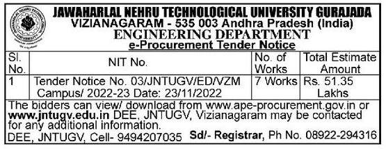Tender Notice No. 03/JNTUGV/ED/VZM
