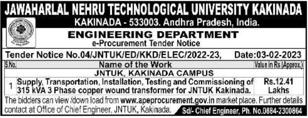 Tender for JAWAHARLAL NEHRU TECHNOLOGICAL UNIVERSITY KAKINADA KAKINADA – 533003.
