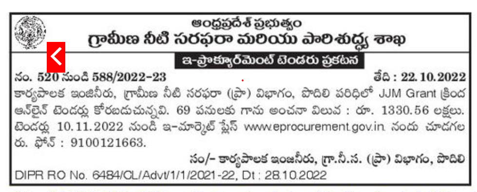 Tender For JJM Grant under Executive Engineer, Rural Water Supply (PR) Department, Podli.