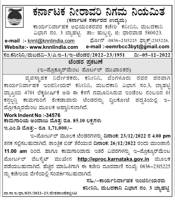 Tender for Kaninini, Mabadakani Division No., Bahatti Range 470) under Accounts Payable under Indent No. 01 Kannalpa Work