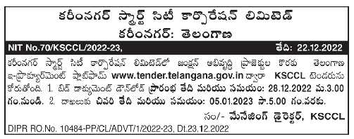 Tender for Karimnagar Smart City Corporation Limited Junction development projects.