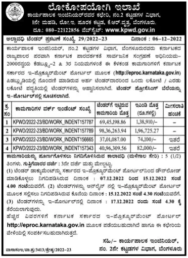 Tender for KPWD/2022-23/BD/WORK INDENT156665