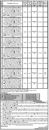 Tender for Laying and fitting of GI pipes including Construction of protection works/ head works at head site, Intake Chamber near head site, 0.02 lac gallon SR, Sluice Chamber, supporting pillars for RWM at spots, Chain Link fencing around structures, cattle trough for Retrofitting of WSS Satni Tulail for 100% coverage of FHTCs Under JJM)