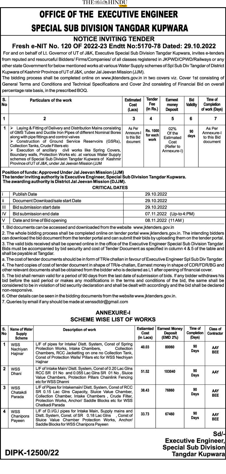 Laying & Fitting of Delivery and Distribution Mains consisting As Per of GMS Tubes and Ductile Iron Pipes of different Nominal Bores along with pipe fittings and control valves