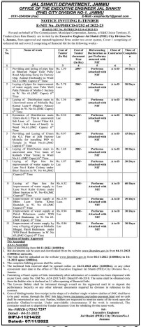 Tender for Laying of Distribution main in Uncovered areas of Mohalla Raj Kumar Lane-9 (Raghav Palace) Tomal in W. No 61.(JMC Capex) 6th Time