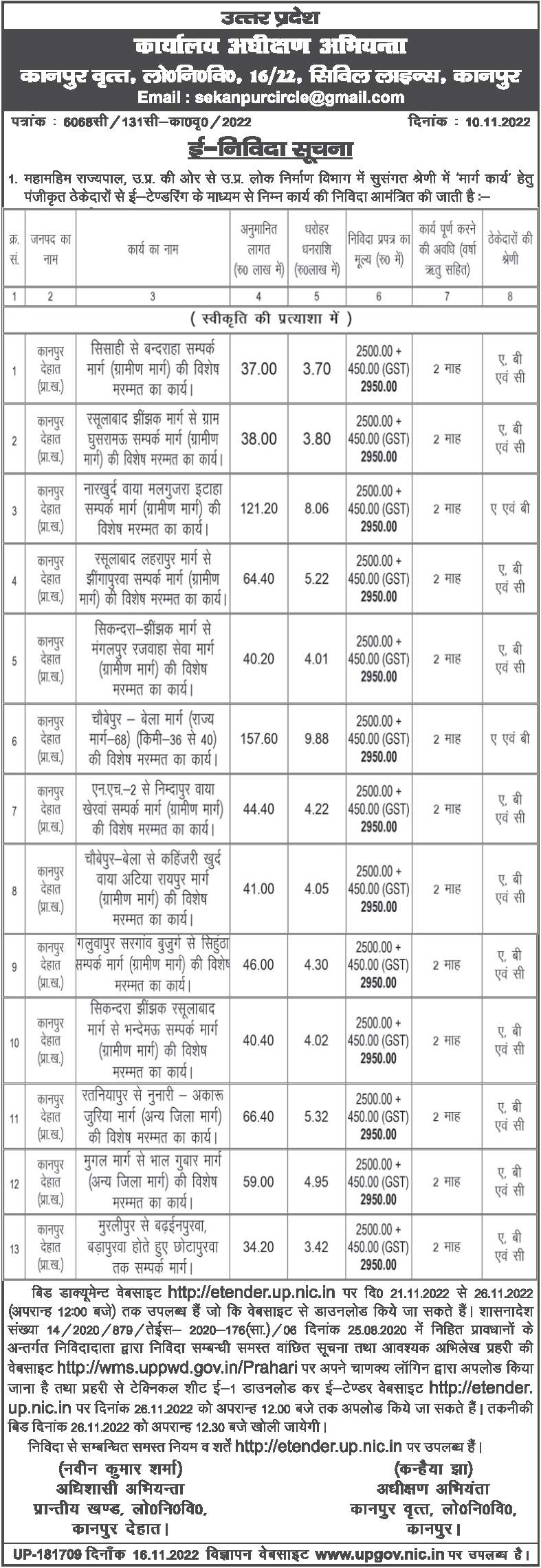 Tender for Link road from Murlipur to Chhotapurwa via Badainpurwa, Badapurwa.