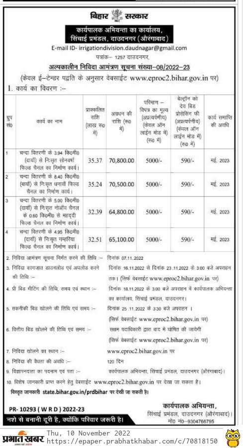 Tender for Mahdi from 0.60 km of Nooy channel emanating from 5.00 km (right) of Chanda Distribution Field channel construction
