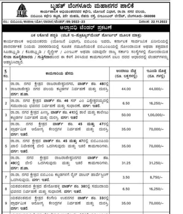 No: BBMP/CAPAA/YO/RARANA/TENDER/09/2022-23