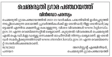 Tender for maintenance works included in the 2022-23 annual plan in Chemmaruti Gram Panchayat.
