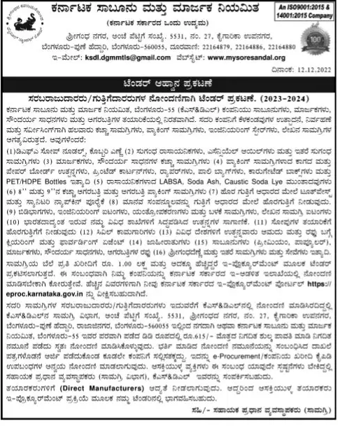manufacture of soaps, detergents, beauty products and incense sticks. The said company requires various