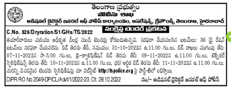 Tender for manufacturers and authorized dealers. Items to be supplied: 36 dry ration items to be supplied.