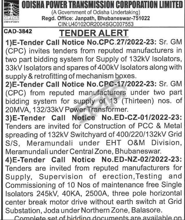 Tender for manufacturers under two part bidding system for supply of 13 (Thirteen) nos. of 20MVA, 132/33kV Power Transformer.