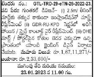 Guntakal Division- (i) Mast Replacement with implantation of not less than 2.5m/ Leaning Mast (i) GDR-RU-KPD section worn out / Science Contact wire replacement. (ii)Installation of anti-climbing divine on OHE mast / portal in high monkey danger area.