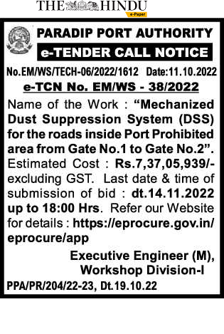 “Mechanized Dust Suppression System (DSS) for the roads inside Port Prohibited area from Gate No.1 to Gate No.2”.