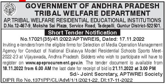 Media Operation Management Agency for Conduct of National Ekalavya Model Residential Schools Sports Meet- 2022-23