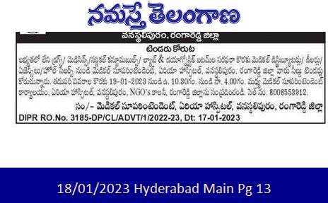 Medical Superintendent, Area Hospital, Vanasthalipuram, Rangareddy District invites sealed tenders from medical distributors/dealers/agencies/wholesalers for supply of non-available drugs/medicines/surgical consumables/lab & diagnostic items.