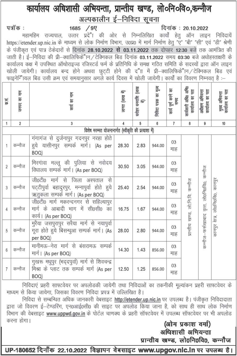 Tender for Mirgaon Mallu ki Pulia to Navodaya Vidyalaya Sampark Marg (As per BOQ)