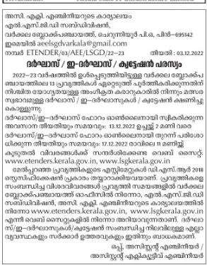 Tender for mmad ETENDER/03/AEE/LSGD/22-23 Darghas / e-Darghas / Quotation Advertisement Darghas e-Darghas have invited competitive quotations from approved contractors with prescribed qualifications