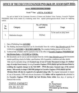 Tender for mode from reputed parties/agencies/vehicle owners for supplying.