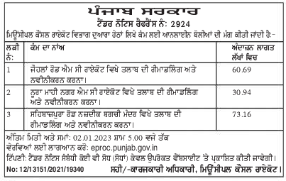 Tender for Modeling and renovation of pond at Bagchi Temple near Sehabazpura Road.