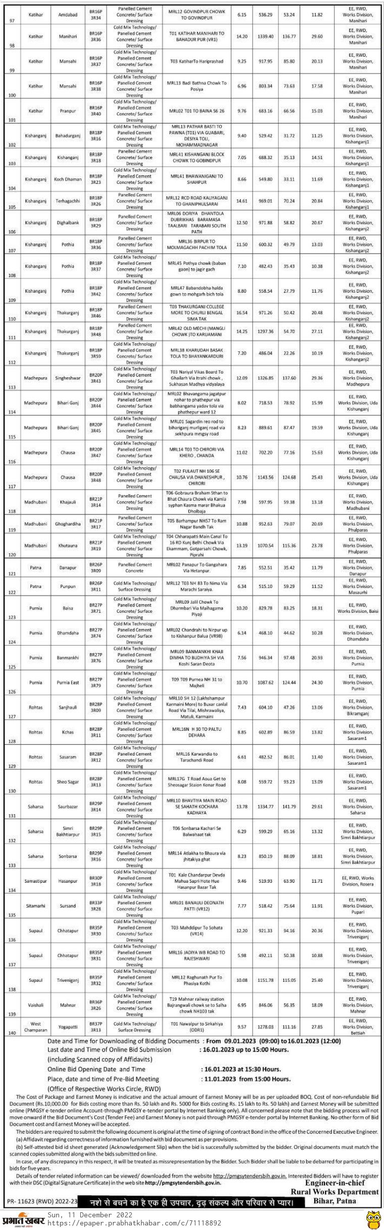 Tender for MRL12 Raghunath Pur To Phasiya Kothi