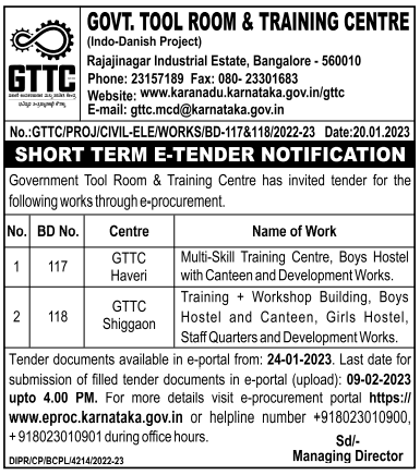 Tender for Multi-Skill Training Centre, Boys Hostel with Canteen and Development Works.