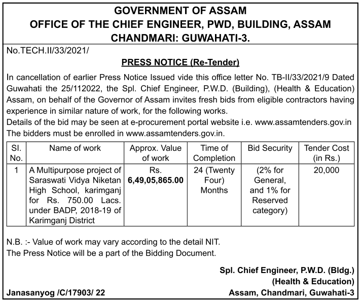 A Multipurpose project of Saraswati Vidya Niketan High School, karimganj for Rs. 750.00 Lacs. under BADP, 2018-19 of Karimganj District