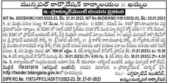Sat 4.30 hrs. 3. Name & Address of Officer to Contact in Office: Assistant Engineer, Khammam Municipal