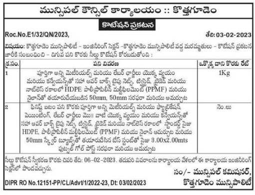 Tender for Municipal Council Office :: Kothagudem Statement of Quotation