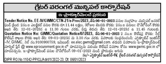 Tender for Municipal General Fund Under: 2No. 11.44 Lakhs for Electrical Works, for 3 Days Tender: 2 Nos. Works