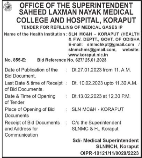 Tender for Name of the Health Institution: SLN MC&H KORAPUT (HEALTH . & F.W. DEPTT., GOVT. OF ODISHA