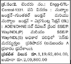 Tender for Nandyala Junction – Guntakal Junction and Nandyala Junction – Erraguntla Section (SL) SSE/P under ADEN/DHNE Sub Division.