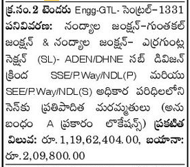 Tender for Nandyala Junction-Guntakal Junction & Nandyala Junction- Erraguntla Junction (SL)- ADEN/DHNE Sub Division